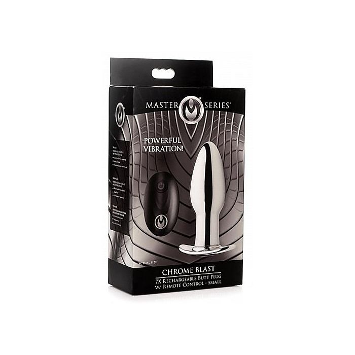 Deze Vibrerende buttplug Chrome Blast 7X van Master Series is gemakkelijk en comfortabel in gebruik. Door de taps toelopende vorm is het inbrengen erg aangenaam en door de brede onderkant kun jij veilig genieten. Het verzwaarde metaal is waterdicht en te combineren met alle soorten glijmiddelen. Geniet van het koele metaal of warm het op in warm water voordat je het inbrengt. Chrome Blast heeft 3 vibratiesnelheden en 4 vibratiestanden die je eenvoudig kunt bedienen met de bijgeleverde afstandsbediening.