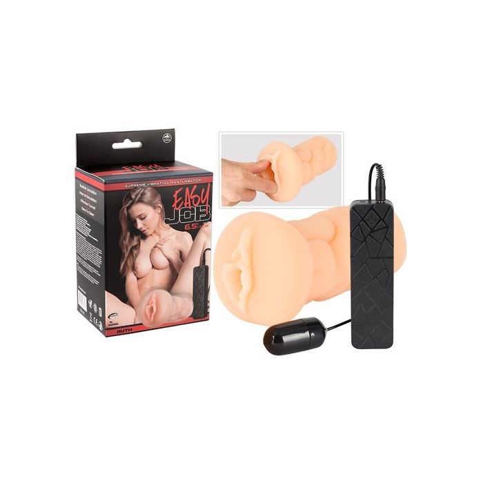Huidskleurige Vibrator die jij op elk moment van de dag kan gebruiken. Hij heeft heerkijke lipjes die al nieuwsgierig open staan. Hij heeft een levensecht uiterlijk en voelt ook zo aan. Voor een realistische ervaring kan jij de meegeleverde bullet er aan de achterkant instoppen zodat het poesje ook nog eens lekekr vibreert. De binnenkant van de sleeve is geribbeld en zal lekker over je schacht heen wrijven.