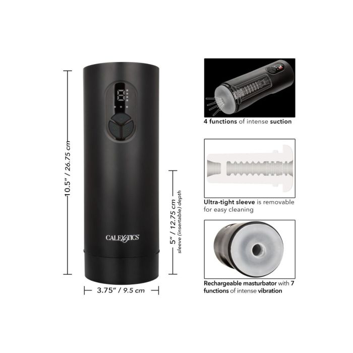 De Vibrerende Masturbator Bionic Suck van CalExotics heeft een ultradichte kamer met textuur die zich strak om je heen wikkelt, terwijl je geniet van 4 intense functies van krachtige zuigkracht en 7 onafhankelijke vibratiefuncties. Een ultrastrakke, ultrazachte, levensechte sleeve kan worden verwijderd voor reiniging of onafhankelijk van de stroker worden gebruikt. Geniet van meer dan 90 minuten van zuig- en vibrerend plezier op lage snelheid en laad de masturbator gemakkelijk op in slechts 2 uur met de meegeleverde USB-kabel. Door de afneembare dop is de Bionic Suck perfect om mee te nemen op reis.