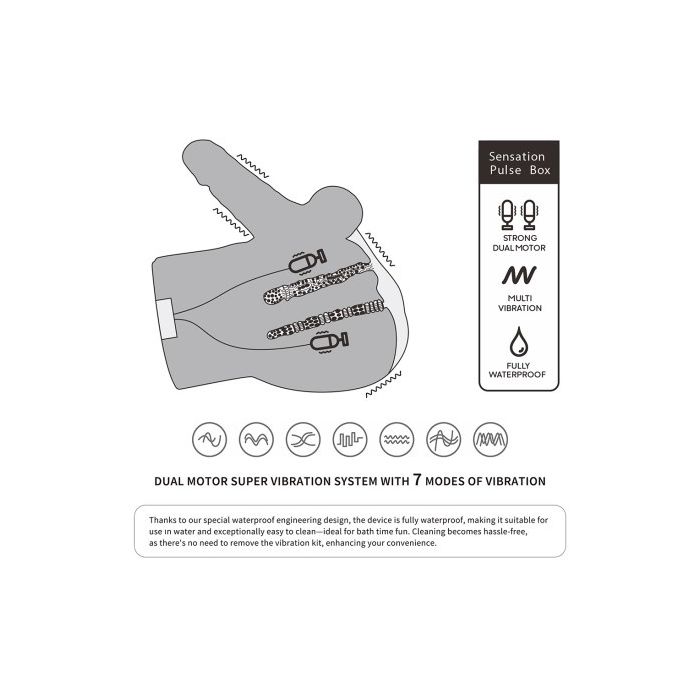 Dit luxe speeltje is uitgerust met de baanbrekende Sensation Pulse Box en een Dual Motor Super Vibration systeem, dat zorgt voor een heerlijke stimulatie. De zorgvuldig ontworpen, gedetailleerde gespreide vagina en de realistische dildo zijn gemaakt om een authentieke ervaring te bieden. Dankzij de waterdichte constructie is deze masturbator volledig onderdompelbaar, waardoor je het kunt gebruiken in bad of onder de douche. Schoonmaken is een fluitje van een cent, want je hoeft de vibratiekits niet te verwijderen wat het onderhoud super eenvoudig maakt.