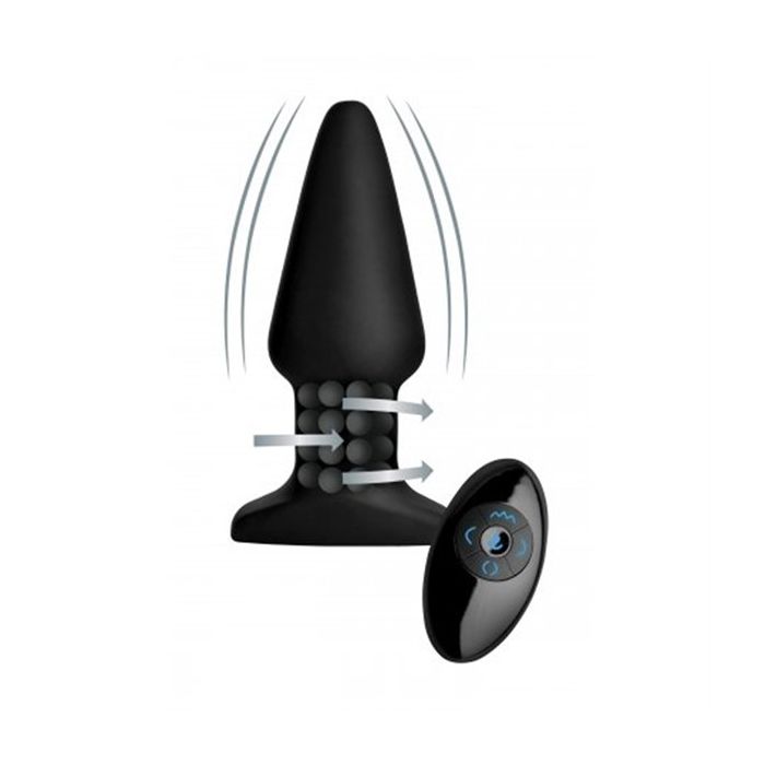 Het heerlijke gevoel van rimming is niet te evenaren, maar deze buttplug komt er wel heel dicht in de buurt. Deze vibrerende rimming buttplug Model R van het merk XR Brands is speciaal gemaakt voor het stimuleren van de binnenkant en de opening van je anus. Geniet van al het plezier dat deze rimming buttplug te bieden heeft en laat je naar een onvergetelijk orgasme leiden. Deze unieke anaal toy is gemaakt van premium siliconen en dankzij zijn taps toelopende vorm is hij zeer gemakkelijk in te brengen. Gebruik hierbij indien gewenst wat glijmiddel voor een extra soepel verloop. De vlakke basis houdt de buttplug op de juiste plek zodat je onbezorgd en veilig kunt genieten. Deze vibrerende rimming buttplug is voorzien van verschillende stimulerende standen. Zo kun je dit speeltje niet alleen laten vibreren, maar ook roteren. Model R heeft maar liefst 8 vibrerende standen en 5 rotatiestanden. De rotatiestand brengt een ongelofelijke sensatie teweeg die maar weinig andere buttpluggen te bieden hebben. Je kunt de verschillende standen eenvoudig bedienen met de bijgeleverde afstandsbediening. Omdat de afstandsbediening verlicht is, kun je ook in het donker goed je favoriete standjes uitkiezen. Laat je je liever verrassen? Geef de afstandsbediening dan aan je partner en geef hem of haar de controle over jouw genot. Super opwindend!