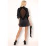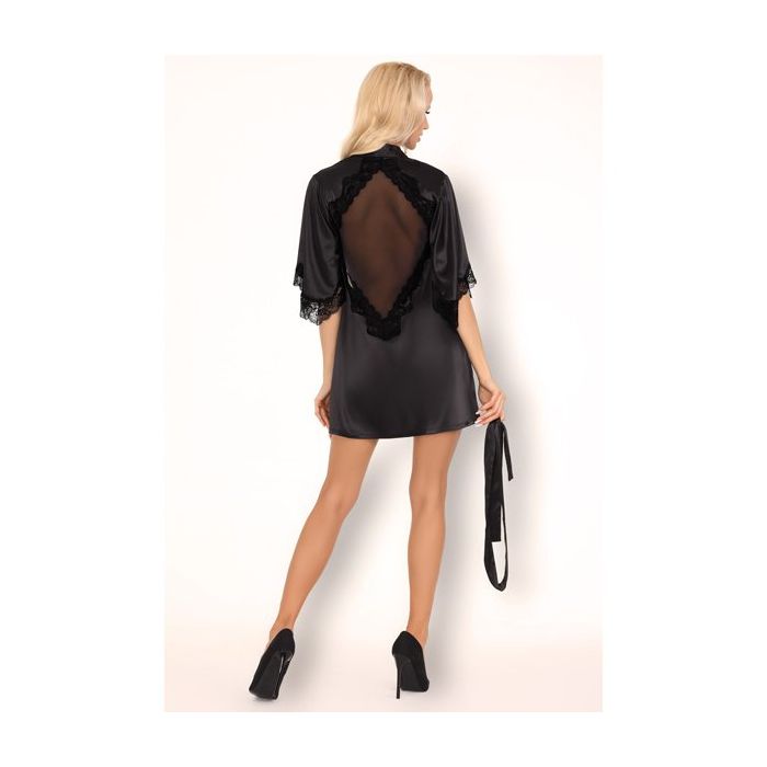 Verleiden is nog nooit zo leuk geweest als met de Vilanata Kimono met String - Zwart van Livco Corsetti. Deze elegante kimono is gemaakt van gladde, glanzende stof dat soepel rond jouw vrouwelijke vormen valt. De trompet mouwen zijn afgewerkt met sierlijk kant. Ook langs de ruitvormige uitsparing op de rug is een rand van kant aangebracht.