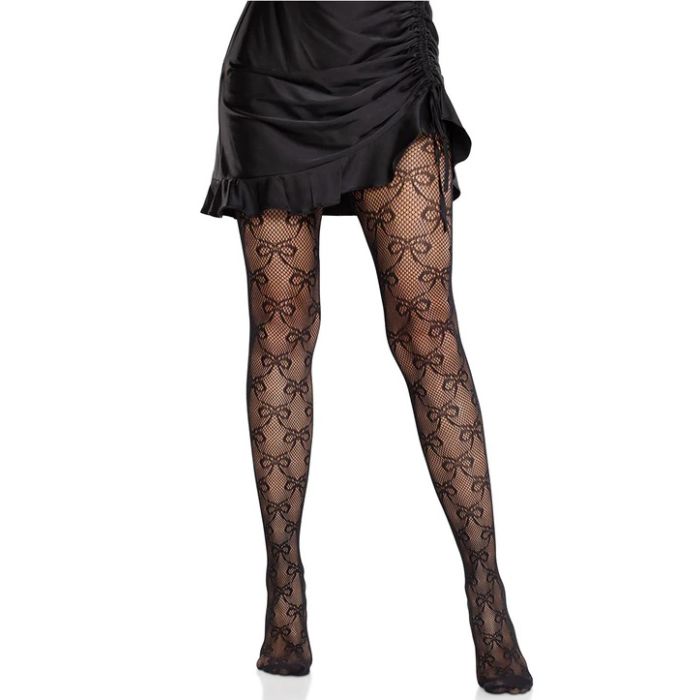 Deze unieke panty is gemaakt van een delicaat visnetmateriaal dat niet alleen ademend is, maar ook een subtiele glans heeft die je benen prachtig accentueert. Het ingewikkelde strikpatroon dat over de panty is verspreid, zorgt voor een verfijnde uitstraling die perfect is voor zowel een avondje uit als een casual dagje.