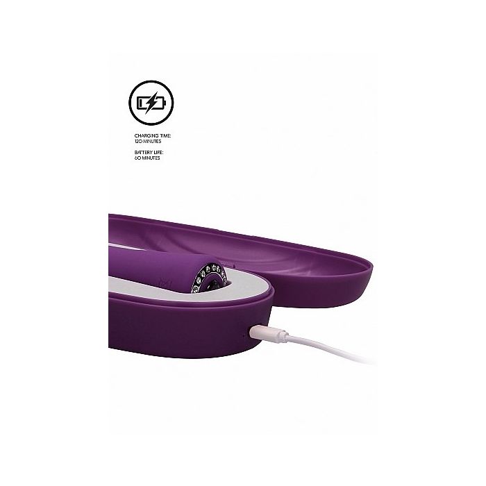 Binnen in de opbergdoos staat de tekst ‘some things are best kept secret’. Maar jij bepaalt natuurlijk helemaal zelf met wie je je intieme geheimen wilt delen. Je kunt de paarse Pearl wand vibrator van Shots Discretion zowel solo als samen met je partner gebruiken. De vibrator is gemaakt van zacht siliconen materiaal, heeft een lengte van 20 cm en diameter van 4,2 cm. De grote kop is ideaal voor het geven van massages voor stimulatie van erogene zones. Dankzij de smalle hals is de kop zeer buigzaam en beweegt hij goed mee op het ritme van jouw verlangen. Naast het discreet kunnen opbergen van de Pearl wandvibrator, is dit speeltje ook heel stil qua geluid. Met minder dan 50dB blijft jouw intieme moment veilig. Ondanks de stilte, zul je aan kracht niks te kort komen. De nieuwe generatie F-1 motor en 10 verschillende vibratiestanden zorgen voor optimale stimulatie van al je gevoelige plekjes. Na gebruik kun je hem schoonmaken met water en toycleaner. Maak goed droog voordat je hem in de opbergdoos stopt en laad hem vervolgens op met de USB aansluiting.