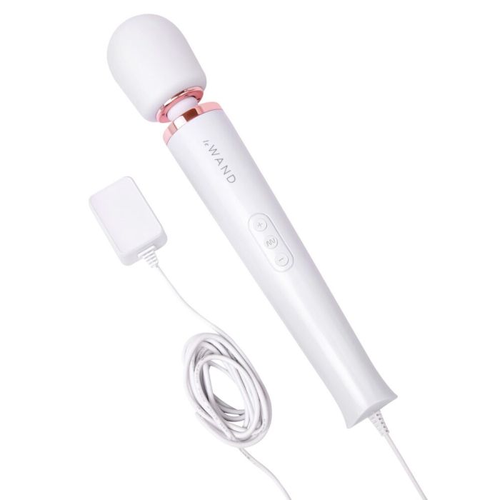 Deze krachtige Plug-In Wand Vibrator is de perfecte combinatie van klassiek design en moderne technologie, waardoor je kunt genieten van non-stop intens massageplezier. Met maar liefst 6 vibratiestanden en 10 intensiteitsniveaus, kun je eenvoudig de perfecte instelling kiezen die aansluit bij jouw wensen. De gebruiksvriendelijke 3-knops bediening op het handvat maakt het schakelen tussen de verschillende opties een fluitje van een cent. Het ergonomische wandontwerp met een lange handgreep en een flexibele massagekop zorgt ervoor dat je moeiteloos alle lichaamsdelen en externe plezierpunten kunt bereiken. De fluweelzachte textuur biedt een luxe gevoel, waardoor elke massage een waar genot wordt. Dankzij het extra lange netsnoer ben je verzekerd van een constante stroomvoorziening, en met de meegeleverde 4 verschillende stopcontactadapters kun je deze massager overal ter wereld gebruiken, perfect voor op reis! Bovendien ontvang je een hoogwaardige opbergtas, zodat je jouw massagestaaf veilig en stijlvol kunt opbergen. Verwen jezelf met de ultieme massage-ervaring en ontdek de kracht van de Le Wand!