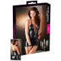 Het wetlook jurkje Zaina is super sexy en accentueert al jouw mooie rondingen op de juiste manier. Het heeft verstelbare schouderbandjes en is aan de voorkant voorzien van een heerlijk diep decolleté. Het rijgdetail aan de voorkant en het glanzende wetlook materiaal geven dit jurkje een pittig karakter. Door de elastische materialen waar het wetlook jurkje Zaina van gemaakt is, omsluit het jouw lichaam op een sensuele wijze en kan niemand jou verleiding weerstaan.