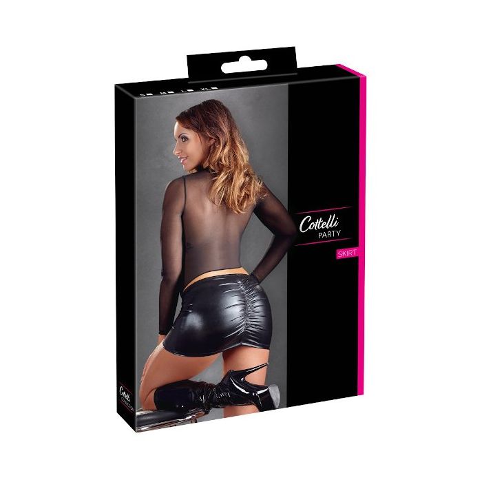 Wanneer jij op een feestje in dit korte rokje uit de Party lijn van Cottelli Collection verschijnt zul jij lang in iedereens geheugen gegrift staan. Het rokje is gemaakt van sexy wetlook materiaal met stretch kwaliteit voor een perfecte strakke pasvorm. Aan de achterzijde is de stof geplisseerd zodat je lekkere kontje er nog smaakvoller uit zal zien! In dit jurkje ben jij klaar om te stappen!