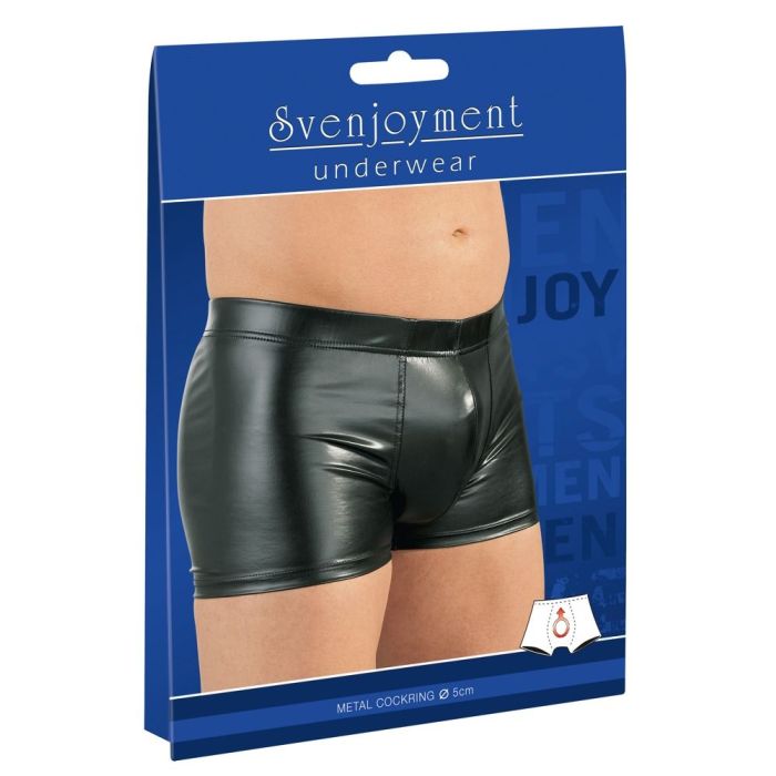 Deze wetlook boxershort van Svenjoyment Underwear is sexy om te zien en opwindend om te dragen. Deze nauwsluitende boxer met stretch kwaliteit, zit heerlijk strak om je billen en is voorzien van een metalen cockring. Trek deze boxer aan en schuif de cockring om je penis om jouw mannelijkheid er nog imposanter uit te laten zien!