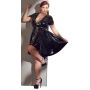 Deze mini lak jurk - zwart heeft een wijd uitlopende rok die jou een zeer vrouwelijke uitstraling zal geven. Het heeft een kort mouwtje en een rits aan de voorkant die geheel open en dicht gedragen kan worden. Tevens heeft de jurk een V-hals met een diep decolleté waarin jij je mooie rondingen goed kan laten zien. Het materiaal glimt super mooi en is dus ook geschikt voor een fetish feestje. Ook in de slaapkamer als bdsm outfit zal dit jurkje het perfect doen.