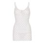 Dit tweedelige setje van het merk Leg Avenue bestaat uit een mini jurkje en een bijpassende string. Het korte jurkje is gemaakt van gehaakt materiaal met een opengewerkt design voor een licht-doorschijnend effect. Het jurkje is voorzien van spaghettibandjes en is afgewerkt met veters bij de buste voor de perfecte pasvorm. De string is wit en past daardoor perfect bij dit sexy jurkje.