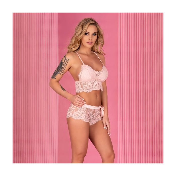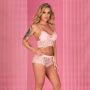 De Wolpilm Kanten Set - Roze is een tweedelige lingerie set van Livco Corsetti. Deze set is gemaakt van weelderig bloemen kant en bestaat uit een bralette top en een short. Het kant is laat al veel van jouw lichaam doorschemeren en voelt lekker zacht en soepel aan.