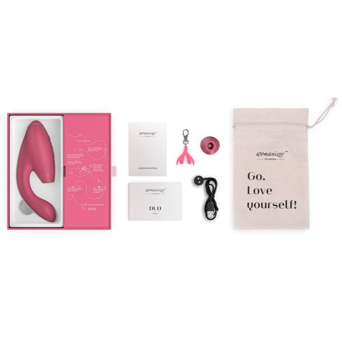 Duo is waterproof zodat jij ook in bad kan genieten van de heerlijke womanizer. Inclusief elegante opbergtas. Oplaadbaar met de meegeleverde magnetische USB-oplaadkabel.