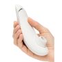 Hier is ie dan. De nieuwste Womanizer Premium 2 in het Grijs. Dit innovatieve speeltje zal jouw clitoris heerlijk onder handen nemen met maar liefst 14 luchtdruk pulserende standen. De standen zijn makkelijk te bedienen met het knopjes systeem aan de bovenkant van het apparaatje. Met het knopje helemaal aan de onderkant van de toy schakel je de Womanizer in. Met de plus en de min knopjes aan de bovenkant op het brede gedeelte is de intensiteit te bedienen.