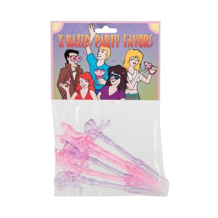 Heb jij een meiden feestje of een vrijgezellenparty? Dan mogen deze party prikkers absoluut niet ontbreken op jouw feestje. Iedereen krijgt er eentje waarmee hij of zij zijn worstje, kaasje of komkommertje mee kan prikken. Ze hebben allemaal een stel in een bepaald standje voor een geweldige beleving. Ga voor een geweldige melige avond met de X-Rated Party Favors en heb de avond van jullie leven.......