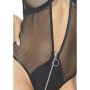 De hals van de X-Strap Body is hoog en gemaakt van wetlook materiaal. De ring aan de hals geeft een BDSM uitstraling aan de body. Over de borsten zijn elastische stroken aangebracht die de stof bij elkaar houden. Het kruis is voorzien van een rits die helemaal vanaf de navel doorloopt tot de onderrug, zodat jouw meest intieme plekjes gemakkelijk te bereiken zijn.