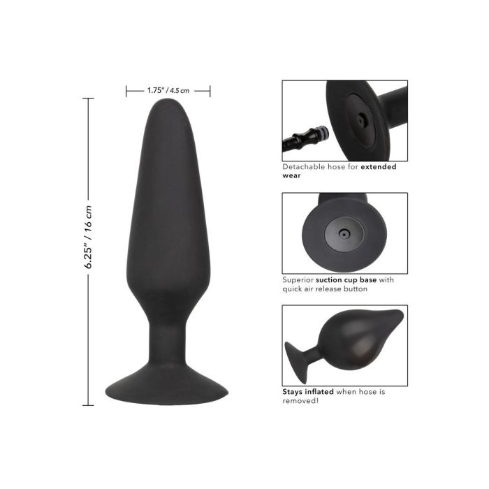 Met een opblaasbare buttplug ben jij verzekerd van een heerlijke anale vulling die elke pplekje van je anus in zal nemen. De XL Silicone Inflatable Plug is een sexy toy die makkelijk te gebruiken is. Met de handige knijpbal pomp jij de buttplug makkelijk op wanneer jij hem in je anus hebt laten glijden. Ben je iets te fanatiek geweest? Geen probleem, met het handige knopje voor het ontluchtingssysteem zorg je snel dat de druk wat minder wordt. Door de brede basis aan de onderkant kan jij de buttplug lang en veilig in houden. Maak na gebruik altijd goed schoon met een milde zeep en een toycleaner.