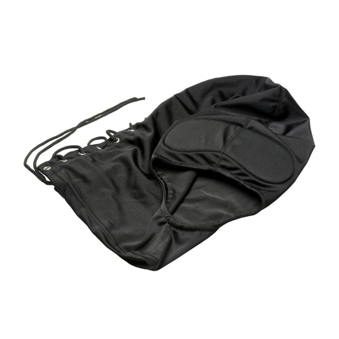 Deze unieke kap is uitgerust met een ingebouwde, gewatteerde blinddoek die het zicht comfortabel elimineert, waardoor de gevoeligheid en anticipatie worden versterkt. De kap laat de mond en neus vrij, zodat je ongestoord kunt ademen en communiceren met je partner. Dankzij de vetersluiting aan de achterkant kun je de kap perfect aanpassen voor een snug, persoonlijke pasvorm, elke keer dat je hem draagt. Gemaakt van een blend van spandex en nylon, is deze kap ongelooflijk rekbaar en comfortabel, waardoor hij ideaal is voor langere sessies van genot.