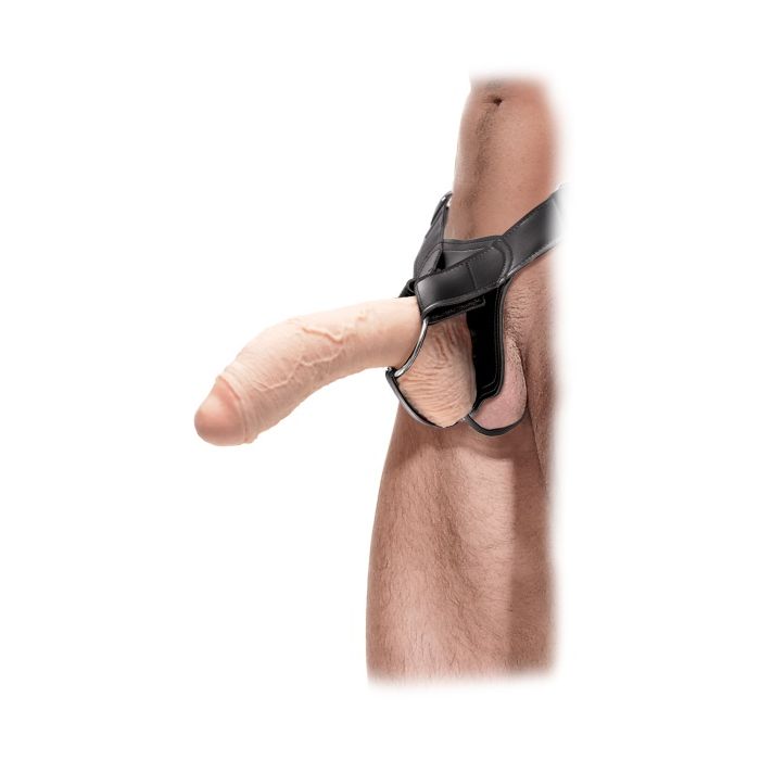 Heb jij graag een maatje meer omdat jij gewoon van een goed gevulde anus of vagina houdt? Dan ben jij met deze XXL Holle Voorbind Dildo met Harnas aan het juiste adres. Deze complete set is geweldig voor de veeleisende gebruikers en liefhebbers van een maatje groter. De realistisch uitziende dildo is hol van binnen en is vleeskleurig voor een nog realistischer uiterlijk. . Door de sterke metalen ring blijft de toy uitstekend op zijn plek. Het leren strap-on harnas kan gedragen worden door mannen en vrouwen en zorgt voor veel stevigheid zodat ook de meest ruige sessies kan worden weerstaan.. Ook is het harnas verstelbaar waardoor het een perfecte pasvorm zal hebben.