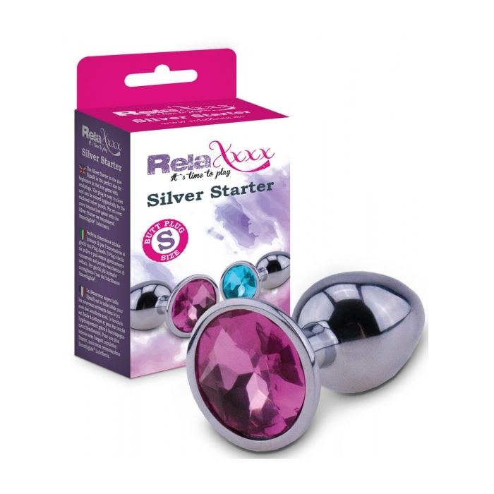 Zilveren Starter Buttplug met Siersteen - Roze - S