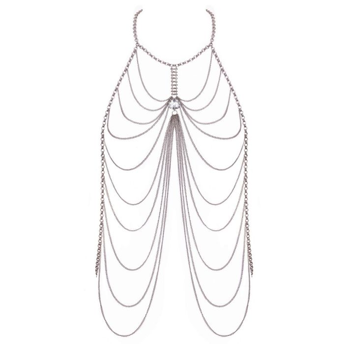 De zilverkleurige lichaamsketting met edelsteen van Cottelli ACCESSOIRES is ontworpen om een weelderige glamourlook te creëren die je zelfvertrouwen een boost geeft. De opvallende kettingrand aan de voorkant accentueert je figuur, terwijl de grote heldere edelsteen tussen de borsten een schitterende blikvanger is. De nekhouder met karabijnsluiting zorgt voor een perfecte pasvorm en maakt het gemakkelijk om de ketting aan en uit te doen. Draag deze glamoureuze lichaamssieraden solo als lingerie voor een verleidelijke uitstraling, of combineer ze stijlvol met badmode en nauwsluitende outfits voor een trendy statement. Met deze lichaamsketting ben je verzekerd van een showstopper-look, waar je ook gaat!