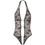 Deze zwarte halterbody uit de Abierta Fina collectie zal jou er oogverblindend laten uitzien! Dit erotische meesterwerk is gemaakt van zwart kant en heeft een uitsnede over de gehele voorzijde. Deze uitsparing loopt zelfs door over het kruis zodat jij je makkelijk door jezelf of door je partner kunt laten verwennen zonder iets uit te hoeven doen. De twee helften van de voorkant worden door middel van drie sprankelende strass kettinkjes bij elkaar gehouden.