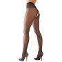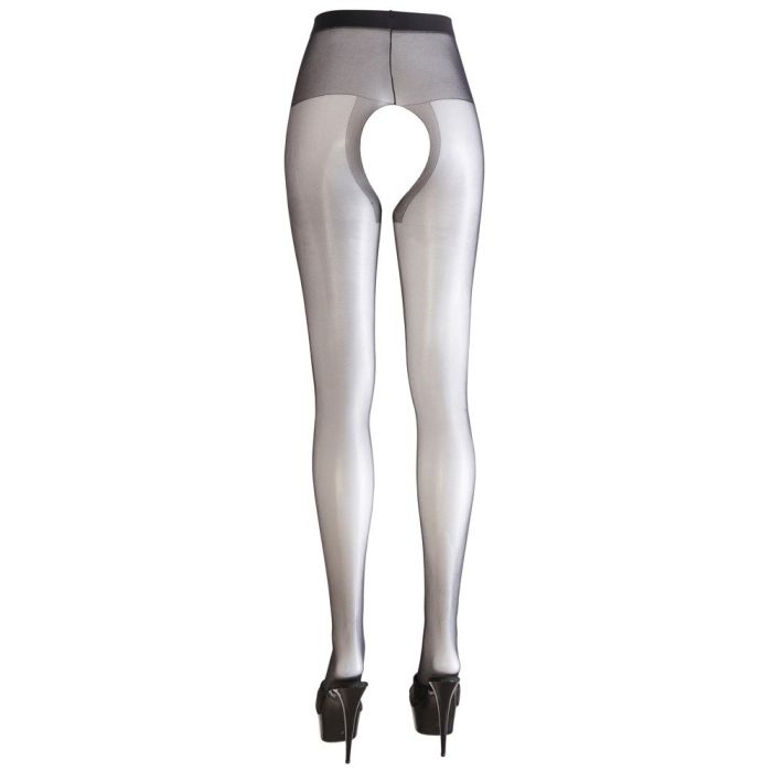 Met deze zwarte 20 den. panty maak je elke look af of je hem nu onder een avondjurk draagt of onder een zakelijke outfit. En het spannende is dat alleen jij weet dat deze panty een open kruis heeft... De brede tailleband is verstevigd zodat de panty altijd perfect blijft zitten. Ook de randen rondom het open kruis zijn extra stevig gemaakt, hierdoor zou je deze panty ook prima aan kunnen houden tijdens de seks zonder dat hij scheurt. De voorgevormde voeten zorgen voor een ultiem draagcomfort gedurende een lange (werk)dag.
