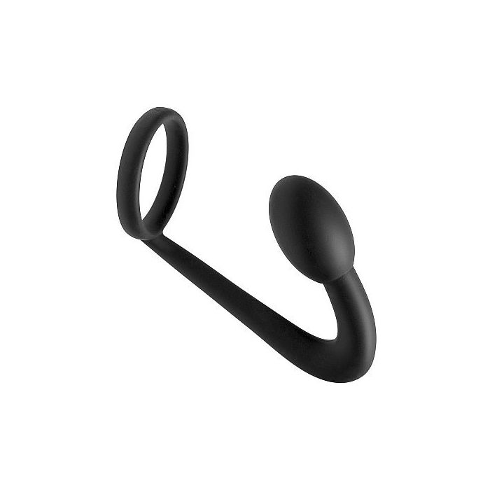 Zwarte siliconen cockring met anaalplug