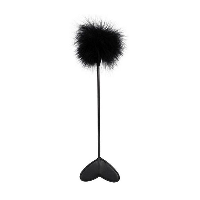 Zwarte veer met hartje aan het uiteinde.