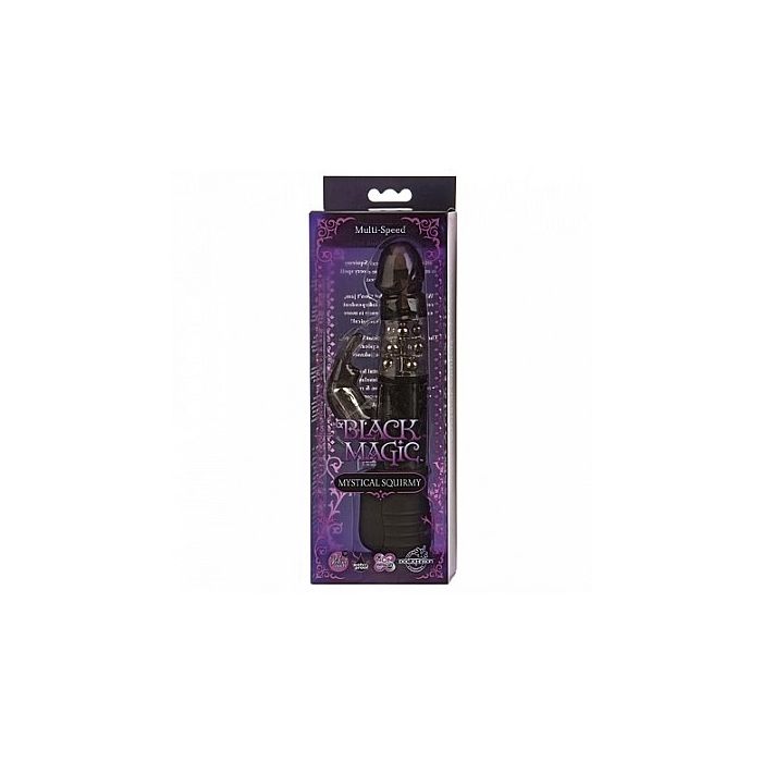 Zet je schrap voor een ongelooflijke ervaring met deze zwarte vibrator black magic. Hij zal gegarandeerd zwarte magie op jou hebben zodra je hem naar binnen hebt gebracht. De heerlijke kralen zorgen voor een geweldig gevoel binnen in de schede en draaien er wellustig op los. Terwijl tegelijkertijd de clitoris stimulator heerlijk tegen je clitje aan het tikken is. De toy is te bedienen met het handige push button systeem en zal jou verrassen met heel wat snelheden en heerlijke rotaties voor een unieke en geile ervaring.