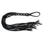Deze spannende zweep heeft 9 riemen van gevlochten leer speciaal voor liefhebbers van dominantie. Met deze zweep kan jij harde stoten uitdelen maar ook zachte strelingen over de huid is een mogelijkheid met de gevlochten strengen. de zweep is van hoge kwaliteit en volledig gemaakt van zacht leer. Het handvat ligt fijn in de hand en de pols lus zorgt ervoor dat je ook een wilde sessie aankan zonder hem kwijt te raken.